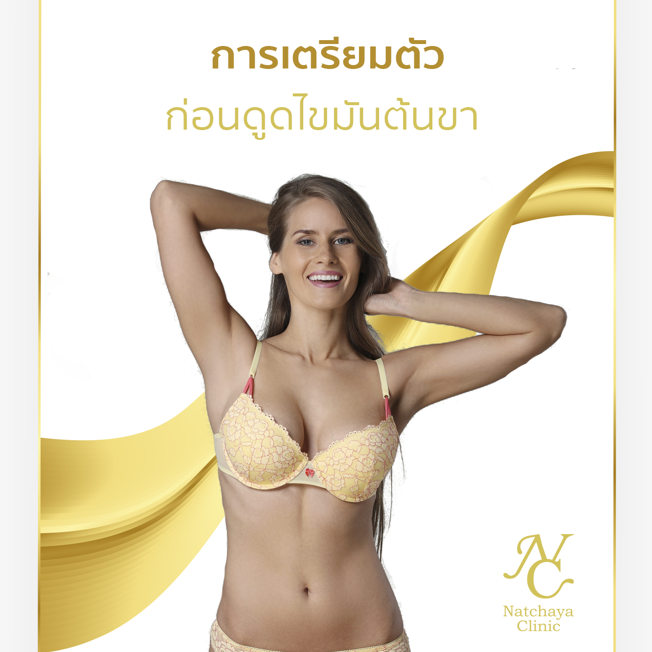 โดยวันนี้ทางณัฐชญาคลินิกของเราจะมาพูดถึงเรื่องของการเตรียมตัวก่อนดูดไขมันต้นขา เพื่อเป็นแนวทางให้สำหรับสาวๆที่มีความสนใจที่จะเข้ารับการดูดไขมัน เพื่อที่จะได้ปฏิบัติตัวและได้ทราบรายละเอียดก่อนที่จะเข้ารับการรักษาเพื่อที่จะได้ปฏิบัติตัวได้อย่างถูกต้อง ก่อนอื่นจะต้องทราบกันก่อนว่า การดูดไขมันนั้น ผู้ที่เข้ารับการดูดไขมันอาจไม่จำเป็นต้องพักรักษาตัวอยู่ที่โรงพยาบาล โดยในการดูดไขมันจะใช้เวลาประมาณ 2 ชั่วโมง แต่จะขึ้นอยู่กับประเภทของการดูดไขมัน และหลังทำเสร็จอาจต้องสังเกตอาการอีกประมาณ 1 ชั่วโมง และควรทราบตั้งแต่ในเบื้องต้นก่อนว่า หลังจากการดูดไขมันเรียบร้อยแล้ว อาจจะมีน้ำไหลซึมออกจากแผลได้ นอกจากนั้น บริเวณที่ดูดไขมันอาจจะเกิดอาการช้ำ บวม และมีความเจ็บปวดหลังการดูดไขมัน แต่จะเป็นเพียงไม่กี่สัปดาห์ ซึ่งถือว่าเป็นอาการที่ปกติไม่ต้องกังวล ส่วนในเรื่องของการเตรียมตัวในการดูดไขมันต้นขานั้น อย่างแรกจะต้องทราบและต้องเข้าใจความเสี่ยงต่างๆ ของการดูดไขมัน ก่อนเข้ารับการรักษา และศึกษาข้อมูลรายละเอียดต่างๆในการดูดไขมันบริเวณต้นขามาก่อน ควรเข้ารับการดูดไขมันกับแพทย์ที่มีความเชี่ยวชาญโดยตรง เมื่อพบแพทย์แล้ว ควรปรึกษาถามคำถามหรือข้อสงสัยต่างๆ ให้ละเอียดรอบคอบ เตรียมพร้อมร่างกายก่อนเข้ารับการทำการดูดไขมัน งดเครื่องดื่มมึนเมา และสารที่ก่อให้เกิดความผิดปกติแก่ร่างกาย และที่สำคัญจะต้องแจ้งให้แพทย์ทราบ หากมีการแพ้ยาหรือใช้ยาชนิดใดอยู่ เนื่องจากยาบางชนิดมีผลต่อการดูดไขมัน เช่น ยาประเภทแอสไพริน อาหารเสริมบางชนิดที่ทำให้เลือดออกง่าย เช่น น้ำมันปลา หรือน้ำมันตับปลา หรือวิตามินซี ควรที่จะต้องหยุดยาทั้งหมด อย่างน้อย 2 สัปดาห์ขึ้นไป ก่อนมาเข้ารับการดูดไขมัน เพราะการดูดไขมันจะมีการใช้ยาชาจำนวนมาก และยาชาเหล่านั้นจะถูกกำจัดไปที่ตับ ถ้าตับยังต้องทำงานเพื่อกำจัดยาอื่นๆและจะกำจัดยาชาได้ช้าลง ก็เป็นผลทำให้ยาชาเกิดเป็นพิษได้ นอกจากนี้ ผู้เข้ารับการดูดไขมันไม่จำเป็นต้องเร่งออกกำลังกายก่อนการดูดไขมันต้นขา ไปทำหลังจากดูดไขมันเสร็จจะง่ายกว่า ส่วนในเรื่องของระยะเวลาพักฟื้น จะต้องมีเวลาพักผ่อนให้เพียงพอ แม้การดูดไขมันต้นขาจะไม่ต้องนอนพักฟื้น สามารถเดินได้ทันทีก็ตาม แต่การยืนเป็นเวลานานๆติดต่อกัน ทำให้ขาบวมได้ นั่นเอง ทั้งหมดนี้คือ การเตรียมตัวที่จะเข้ารับการดูดไขมันต้นขา เราควรที่จะเตรียมตัวก่อนเข้ารับการดูดไขมันให้ดี เพื่อที่จะได้มีผลการรักษาตามต้องการและ