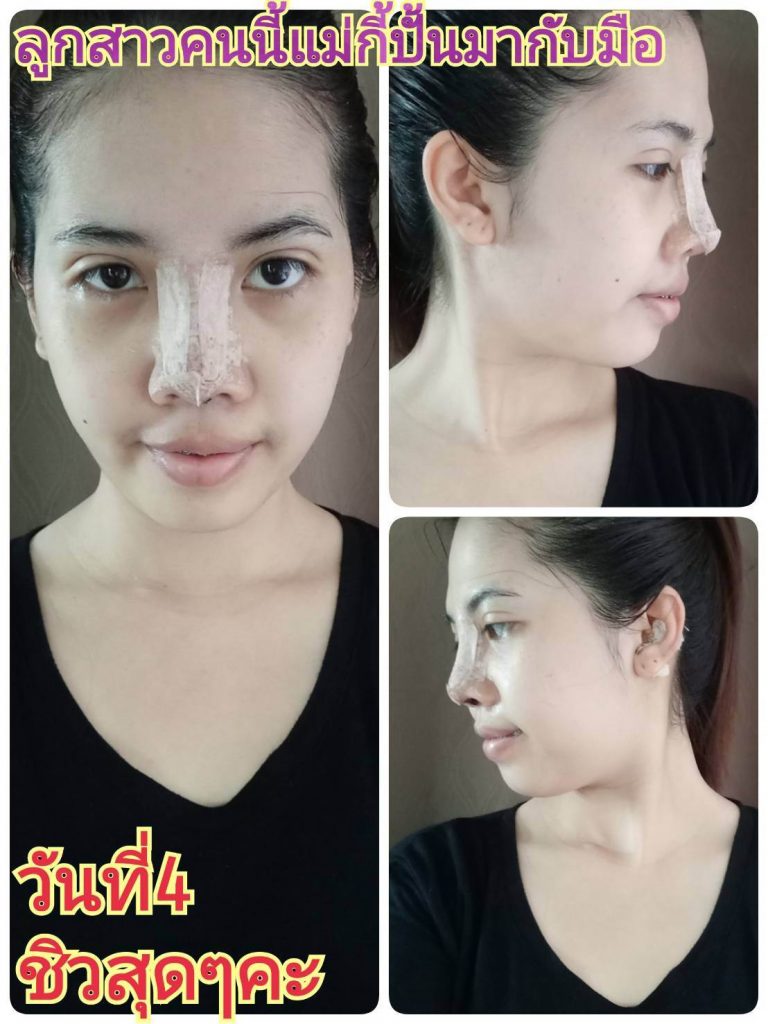 เราจึงหาข้อมูลอีกที่จะทำครั้งที่ 3 ครั้งนี้ดูจากคนข้างเคียงไปทำมาแล้วสวย จึงคิดว่าคงเป็นครั้งสุดท้ายเพราะทรงที่ได้ถือว่าพอใจเรามาก แต่เปล่าเลยผ่านไปเกือบ 6 เดือนปลายจมูกเราบางใสซิลิโคนจะโผล่เมื่อไหร่ไม่รู้ คือปลายจมูกจะทะลุนั่นเองค่ะ เราจึงรีบหาคลินิคที่จะทำการแก้ครั้งที่ 4 มาเจอกับณัฐชญาคลินิก เราเลยได้มีโอกาสปรึกษาคุณหมอเปาถึงการแก้จมูกครั้งที่ 4 ครั้งนี้ค่ะ